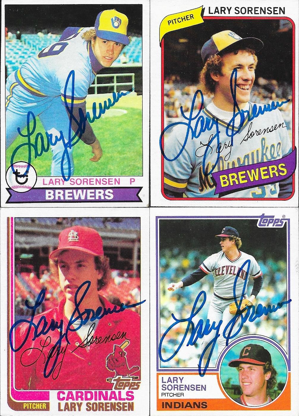 Sorensen (b. 1955) played in the majors from 1977 to 1985 and 1987 to 1988 for the Brewers, Cardinals, Indians, A's, Cubs, Expos and Giants. He had a career record of 93-103 with 569 strike outs and a 4.15 ERA. He was an All Star in 1978.