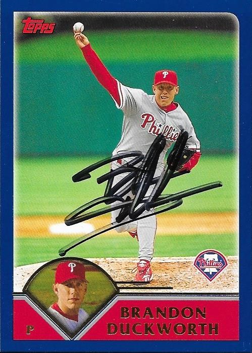 Duckworth (b. 1976) played in the majors from 2001 to 2008 for the Phillies, Astros and Royals. He had a career record of 23-34 with 376 strike outs and a 5.28 ERA.