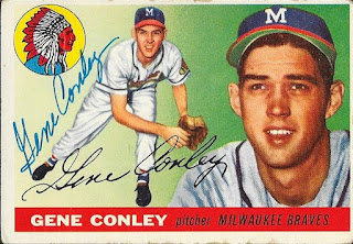 Conley (b. 1930) played in the majors from 1952 and 1954 to 1963 for the Boston and Milwaukee Braves, Phillies and Red Sox. He had a career record of 91-96 with an ERA of 3.82 and 888 strike outs. He won the World Series in 1957 with the Braves. He was an All Star three times, finished 3rd in the 1954 NL MVP voting and finished as high as 22nd in the NL MVP voting.